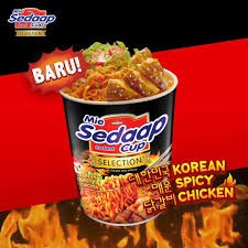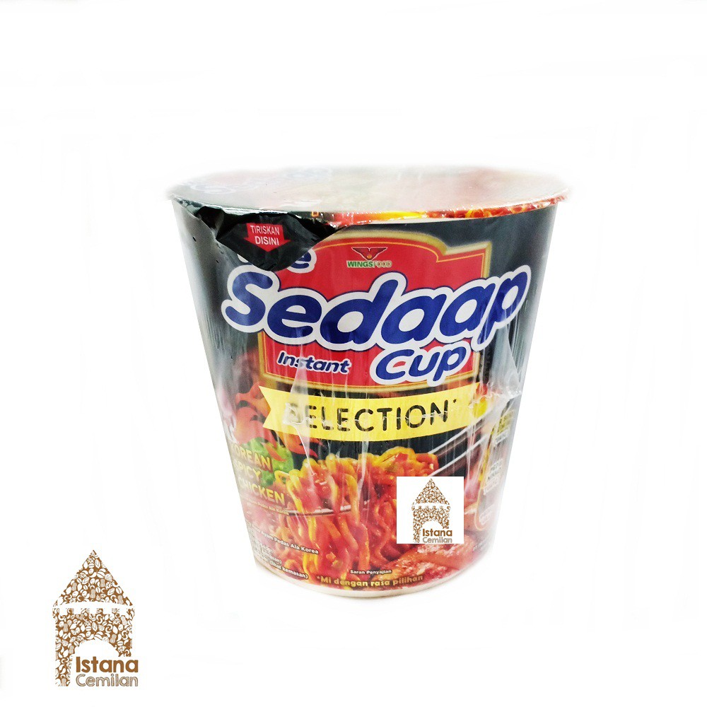 Gaya hidup masyarakat saat ini membutuhkan sesuatu yang bersifat praktis dan sesuai dengan berbagai macam kondisi kapan pun dan di mana pun ujar Yolanda Sastra Head of Marketing WINGS Food. SEDAAP Cup Korean Spicy Chicken Mie Instant 81 gnt 85 g merupakan mie instant dalam kemasan terbuat dari bahan mie berkualitas terbaik dan bumbu-bumbu pilihan sehingga menciptakan rasanya yang sedap. Konsumen dapat merasakan sensasi Pedas Nikmat hanya dengan menggunakan satu bungkus bubuk cabe dan sensasi Pedas Gila dengan menggunakan dua bungkus bubuk cabe.